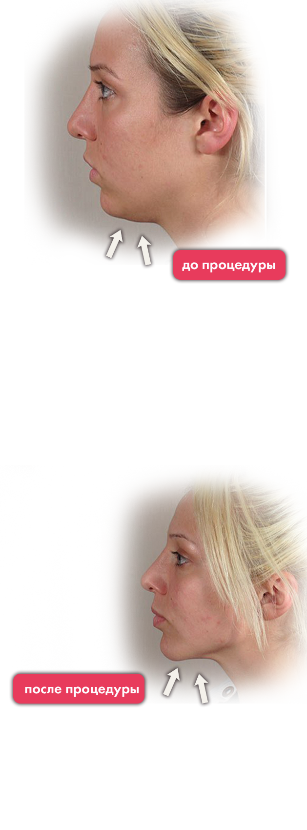 На примере пациентки Ольги, проработана нижняя часть лица Испанским липолитиком Dermaheal. Результат так же зафиксирован после первой процедуры.