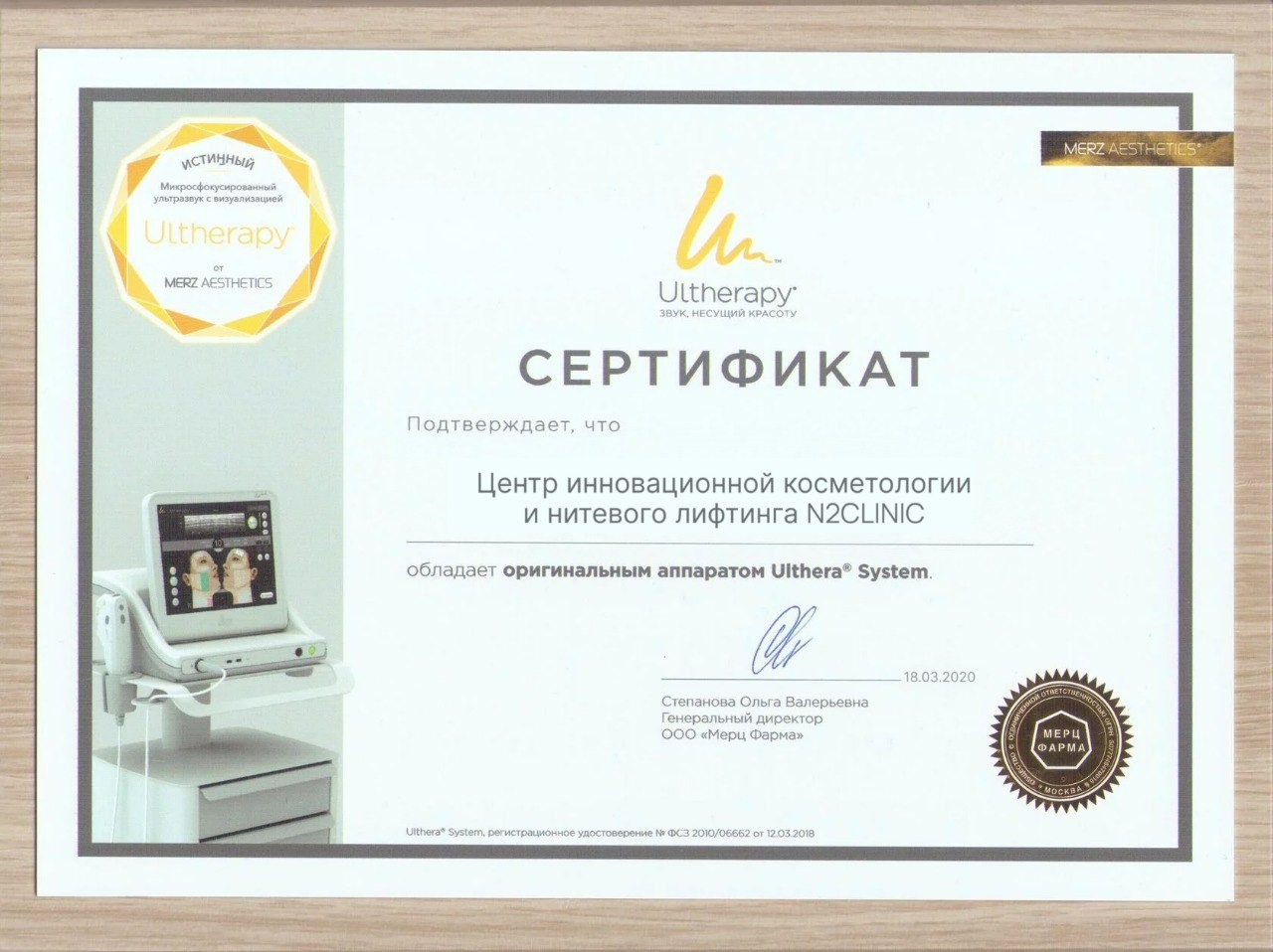 Сертификат, хрустальный бриллиант ULTHERA и звезда «Спасибо за 1 миллион ULTHERAPY» от компании Ulthera INC