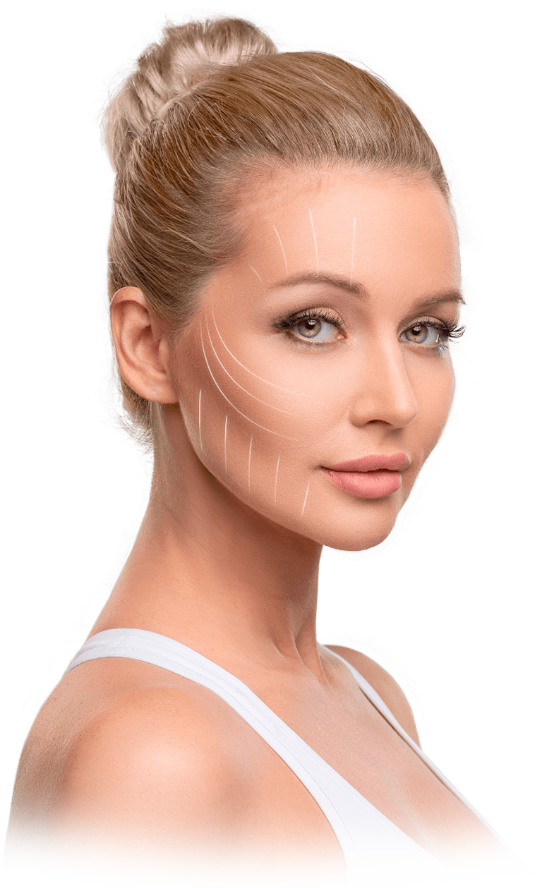 лоб, подбородок, шея полностью